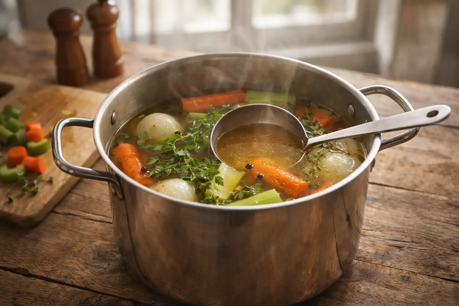 Il brodo vegetale non è quello che pensi. Non è una ricetta semplice che si risolve buttando verdure in acqua e aspettando. È una costruzione metodica dove ogni gesto conta e dove la differenza tra un brodo piatto e uno che sa di qualcosa dipende da scelte che sembrano minime ma non lo sono affatto. La maggior parte delle persone lo fa male perché confonde "facile" con "veloce", quando invece sono due cose diverse.